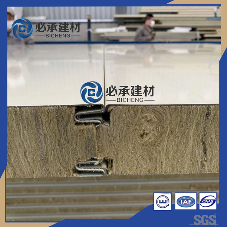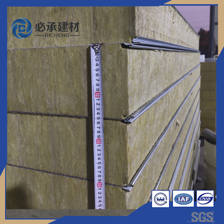 1.芯材密度的不同,在價格上我們可以知道,烘道板的價格要高于普通的巖棉夾芯板,其因素之一為烘道板使用芯材的密度要大。烘道板的巖棉密度≥100kg/m³,由于烘道板對于保溫隔熱,防火的性能要求比較高,需要巖棉夾芯板的導熱系數低,因此,巖棉芯材的質量要求也高,所以必承建材堅持用100KG以上的玄武石巖棉作為烘道板的芯材,堅持自己的產品標準。